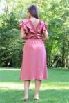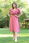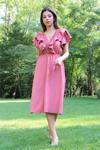 Ürün Adı: Dipmoda kadın yaka ve kolları fırfırlı bağlama detaylı ayrobin elbise NB10050