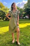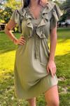 Ürün Adı: Dipmoda kadın yaka ve kolları fırfırlı bağlama detaylı ayrobin elbise NB10050