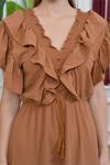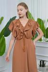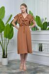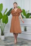 Ürün Adı: Dipmoda kadın yaka ve kolları fırfırlı bağlama detaylı ayrobin elbise NB10050