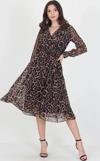 Ürün Adı: Dipmoda kadın astarlı kruvaze yaka midi boy leopar desenli şifon elbise RSSN07