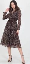 Ürün Adı: Dipmoda kadın astarlı kruvaze yaka midi boy leopar desenli şifon elbise RSSN07