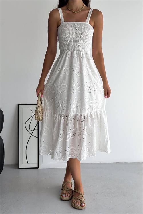 Ürün Adı: Dipmoda kadın yazlık pamuk gipeli askılı beyaz elbise KKLF22
