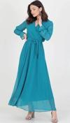 Ürün Adı: Neşeli Butik Kadın Yeni Sezon Astarlı Kruvaze Yaka Uzun Şifon Elbise NB003