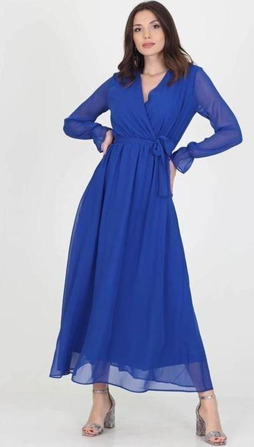 Ürün Adı: Neşeli Butik Kadın Yeni Sezon Astarlı Kruvaze Yaka Uzun Şifon Elbise NB003