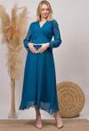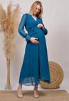 IŞŞIL O7053-Kruvaze Şifon Kuşak Baby Shower Maxi Hamile Elbise - Image 1