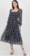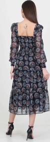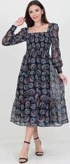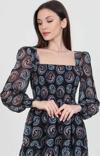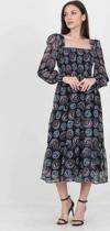 Ürün Adı: Dipmoda kadın indigo kare yaka gipeli eteği fırfırlı desenli şifon elbise NB100361