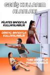 Evrensel uyumluluk: Pilates bandı, düz/loop lastik, karabinalı tüp lastik ve tutma saplarıyla uyumludur.