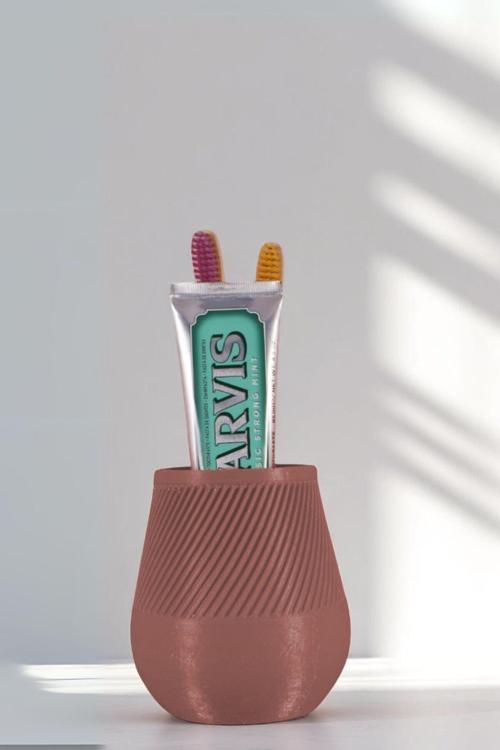 Bu diş fırçalığı, sadece banyoda değil, evinizin ve ofisinizin farklı köşelerinde de estetik bir fırçalık görevi görebilir.