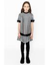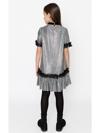 Parlak varaklı ayna efektli kumaştan tasarlanmıştır. Kollarında tül fırfır detayları vardır.