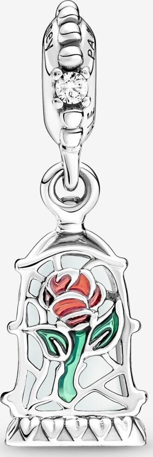 Disney Güzel ve Çirkin Sihirli Gül Sallantılı Charm ile stiline harika bir dokunuş kat. Elle uygulanmış kırmızı ve yeşil mine detaylı oymalı gülü saran yıldız işlemeli şeffaf açık mavi bir Murano camdan bir fanusa sahip. 925 ayar gümüş ile elle tamamlanan charm’ın halka kısmı şeffaf kübik zirkon taşlar ve minik boncuklar ile işlendi, alt kısmında ise “Beautiful as a Rose” (Bir Gül kadar güzel) yazısı bulunuyor. Aşkın gücünün büyüleyici bir hatırlatıcısı.
