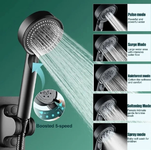 Bu siyah ve 5 fonksiyonlu duş başlığı, banyo deneyiminizi bir üst seviyeye taşıyacak şık ve işlevsel bir üründür.