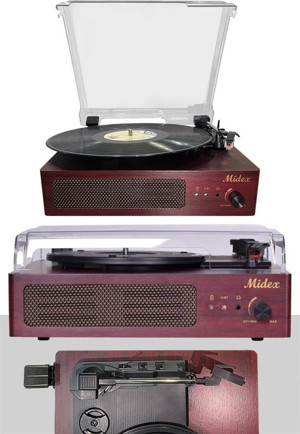 Midex Mtx-303 Nostaljik Pikap Plak Çalar (Şarjlı Bluetooth Aux Hoparlörlü 3 Devir) İğne Dahil