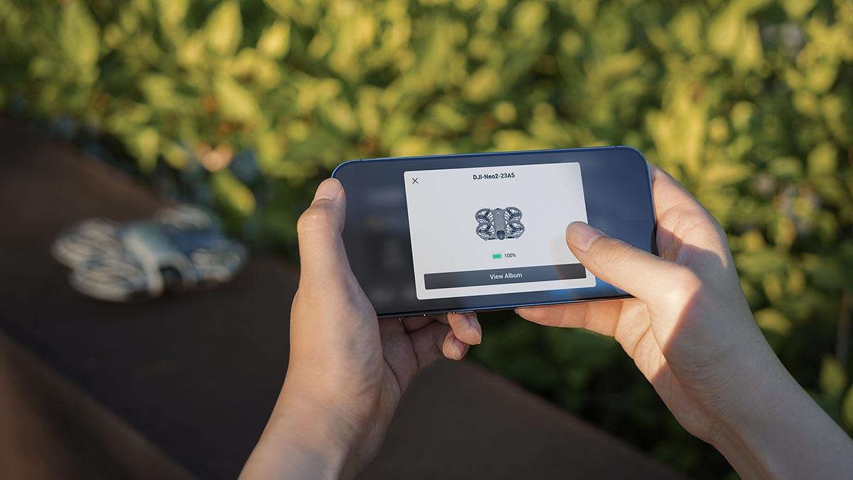 DJI Fly uygulamasındaki sanal kumandalarla Neo 2’yi kontrol edin ve ayrı bir uzaktan kumanda satın almaya gerek kalmadan uçuş keyfine hızla dalın.