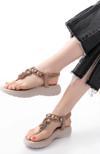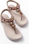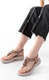 ZenaLook Dm-609 Bej Taşlı Arka Lastikli Parmak Arası Kadın Sandalet