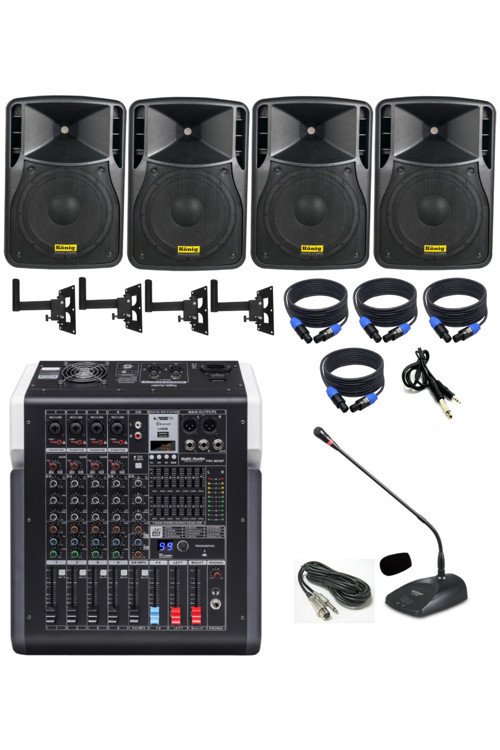 Dmm Okul – Konferans Salonu Ses Sistemi Paketi | 4X8” 350W Kabin Hoparlör 6 Kanal Bluetooth Mikser