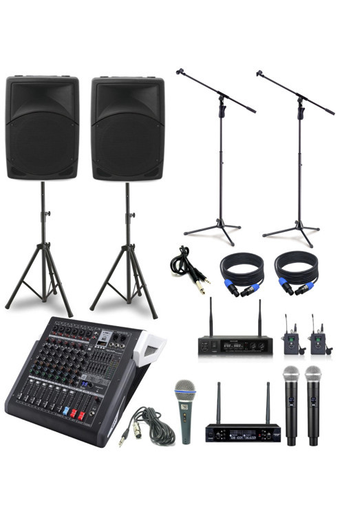 Dmm Okul Tören Ses Sistemi | 2X12” Kabin Hoparlör 8 Kanal Amfili Mikser Telsiz Mikrofon Seti