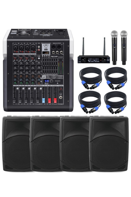 Dmm Sahne Ses Sistemi Seti | 4X 12'' Kabin Hoparlör Amfili Mikser Telsiz Mikrofon Sehpa Ve Kablo
