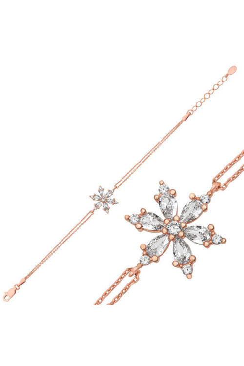 DMR Elegance DMR Elegance Gümüş Rose Beyaz Lotus Çiçeği Kadın Bileklik