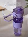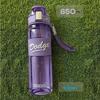Dodge Su Matarası Tritan Silikon Kemerli, Şeffaf Kilitli Kapaklı, Sızdırmaz, Dayanıklı, Hafif, BPA İçermeyen Su Şişesi Mor 850Ml
