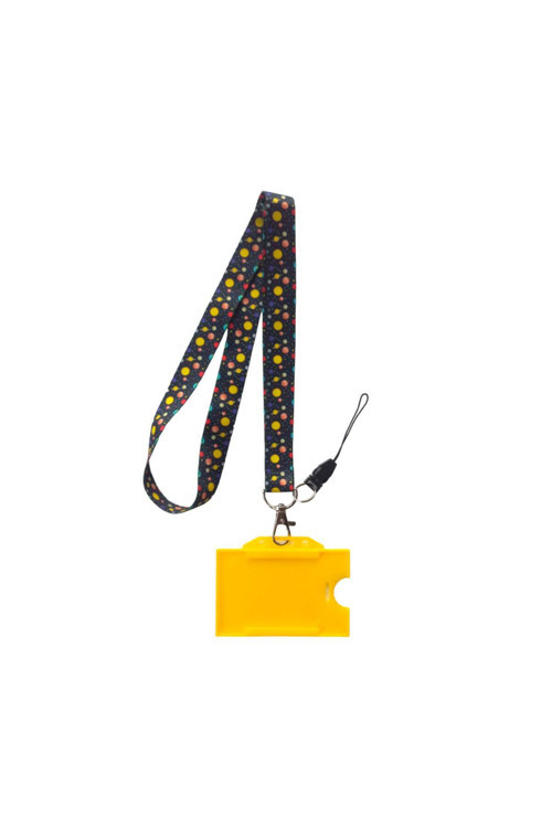 Paket içeriği 1 adet yaka askı ipi ve telefon askısı aparatı, ve Sarı Yatay Plastik Kartlık