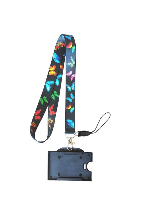 Dodo Bone Kelebek Kart Askı Ipi, Yaka Askı Ipi, Boyun Askı; Telefon Askı Aparatı Ve Siyah Plastik Kartlık