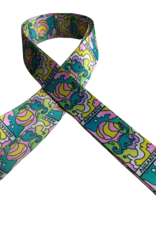 Kova burcu temalı tasarımıyla, Kova burcu severlerin kişisel aksesuarlarına şıklık katan renkli ve eğlenceli bir yaka kartı askı ipi