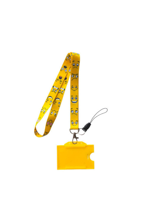 Paket içeriği 1 adet yaka askı ipi ve telefon askısı aparatı, ve Sarı Yatay Plastik Kartlık