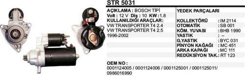 Oem Numaraları: 028911023M, 02A911303B, 02B 911 023 A, 02B 911 023 B, 02B 911 023 DV