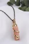 Turuncu renk güneş taşından el işçiliği altın kaplama tel örme kolye. Su ve kimyasal maddelerden uzak tutularak kararma yapmaz. Kolye ucu ortalama 3.5X1 CM boyutlarındandır.