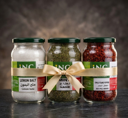Doğal Baharat Seti – Limon Tuzu, Nane ve Acı Pul Biber | Cam Kavanoz 3’lü Paket