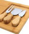 MTM Home Doğal Bambu 4 lü Peynir Sunum Seti Ahşap Sunum Tahtası, Paslanmaz Çelik Çatal, Bıçak, Spatula