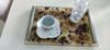 • Boyut ve Kullanım: Yaklaşık 17x25 cm boyutlarındaki bu tepsi, kahve fincanları, takılar, parfümler veya mumlar için ideal bir sergileme ve sunum alanı sunar.
