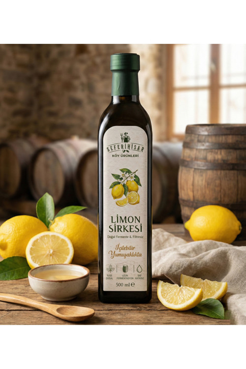 Mutfaktaki Sarı Mucize: Seferihisar’ın Taze Nefesi Doğal Limon Sirkesi. Sabahları güne arınmış bir beden ve yüksek enerjiyle başlamak ister misiniz? Seferihisar köy ürünleri uzmanlığıyla hazırlanan Doğal Limon Sirkesi, Ege’nin taptaze limonlarının uzun fermentasyon sürecinden geçerek şifalı bir iksire dönüşmüş halidir.
