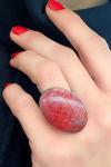 Doğal Mercan Taşlı 925ayar Gümüş Ayarlanabilir Oval Yüzük