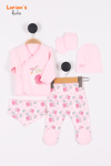 Lorian's Doğal Pamuklu Yeni Doğan Kuğu Nakışlı Patikli Bebek 5'li Zıbın Takım - Hastane çıkışı - Pembe