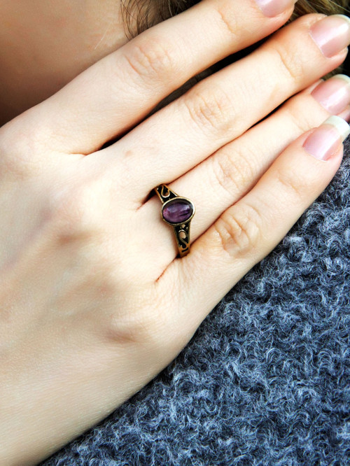 Doğal Taş Ametist Doğal Taşlı Ayarlanabilir Antik Kadın Yüzük