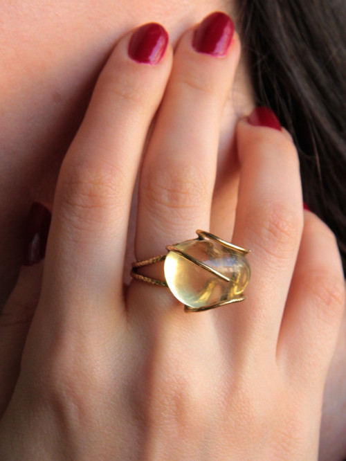 Doğal Taş Limon Kuvars Dev Boy Doğal Taşlı Ayarlanabilir Yüzük