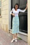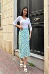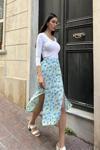 Now Moda Doğal Viskon Çift Yırtmaç Desenli Mavi Etek %100 Viskon Doğal kumaştan üretilen çift yırtmaç detaylı bu harika etek, şık tasarımıyla kalbinde taht kuracak! Rahat yapısı ile çok şık bir tasarıma sahip renklerin harika uyumundan oluşan bu modelimiz,rahat yapısı ile tarzını yansıtacaktır. Nefes alabilen esnek doğal kumaştan üretilmiştir.
