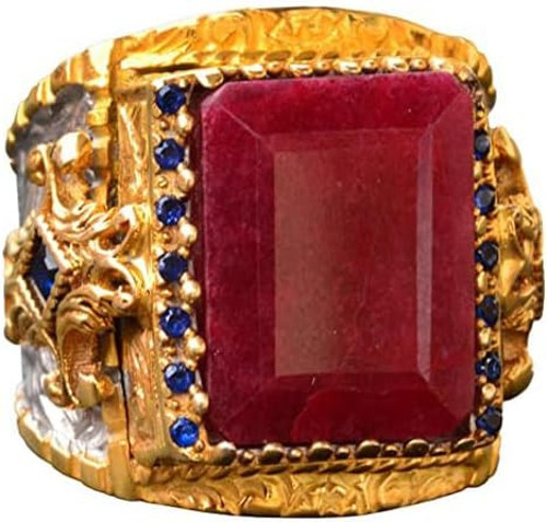 Kambo Doğal Yakut Taşlı El Yapımı Yüzük, Altın Kaplama Sterlin Gümüş Erkek Yüzüğü - Tutku ve Refah Sembolü