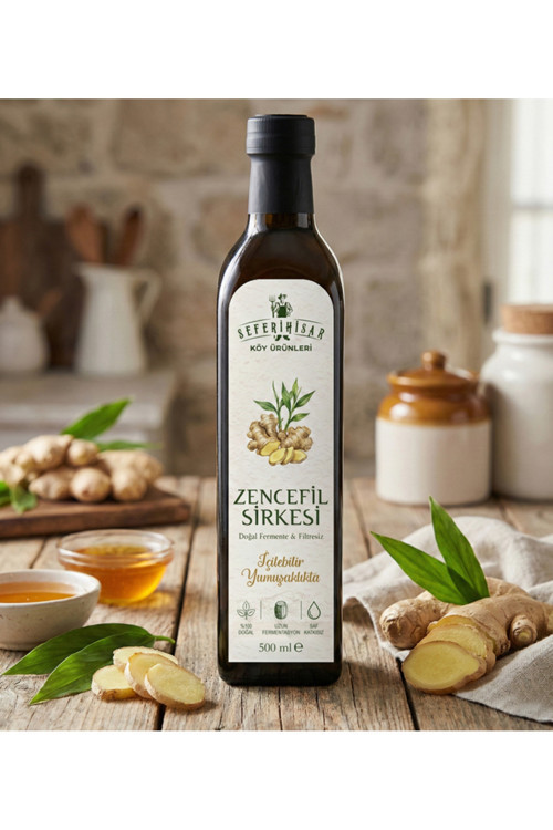Seferihisar köy ürünleri uzmanlığıyla hazırlanan Doğal Zencefil Sirkesi, en kaliteli zencefil köklerinin aylar süren uzun fermentasyon yolculuğunun bir mucizesidir.