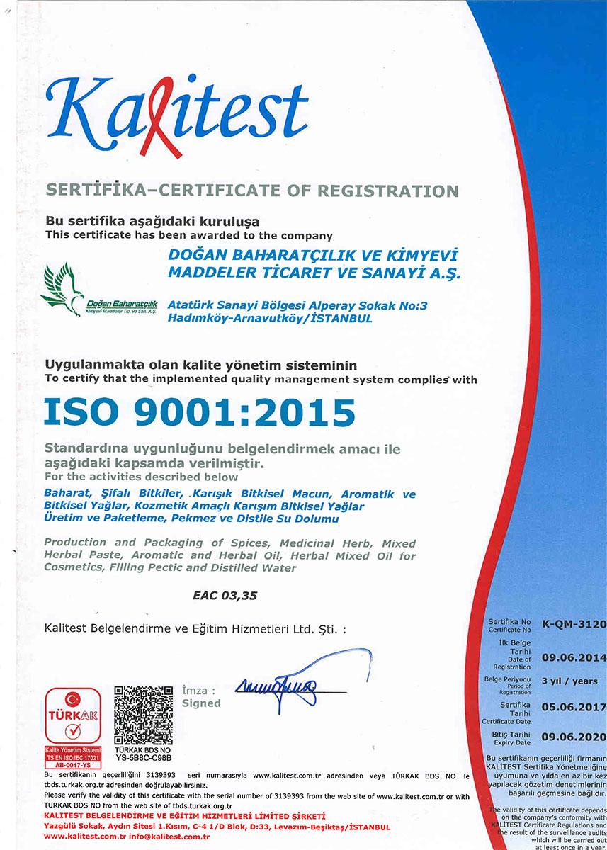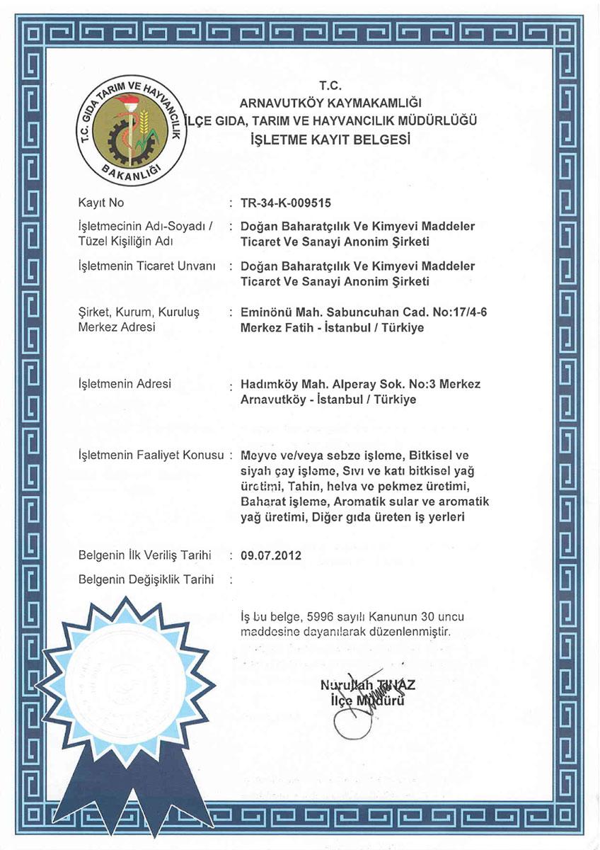DOĞAN BAHARAT BELGE VE SERTİFİKA: