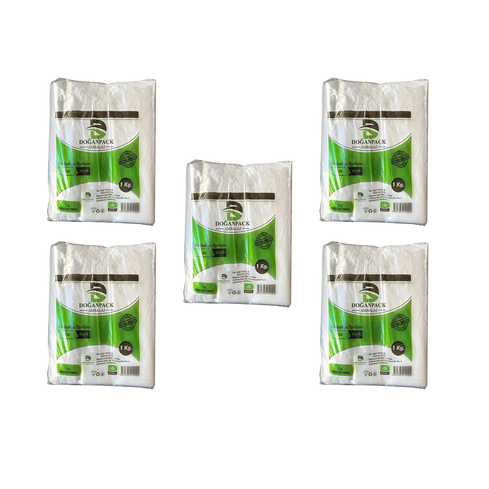 Genel Tedarik Doğanpack Şeffaf Naylon 2 lik 23x36 Cm. Bakkaliye Poşeti Torbası - 1 Kg. - Ort. 190 Adet - 5 Paket
