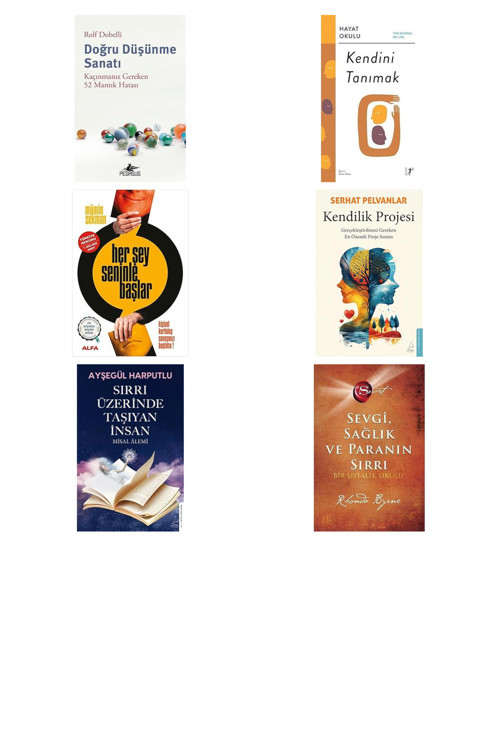Doğru Düşünme Sanatı: Kaçınmanız Gereken 52 Mantık Hatası - Hayat Okulu - Kendini Tanımak: The School of Life / Hayat Okulu - Her Şey Seninle Başlar: Kişisel kurtuluş savaşınızı başlatın! - Kendilik Projesi - Sırrı Üzerinde Taşıyan İnsan: Misal Alemi - The Secret - Sevgi Sağlık ve Paranın Sırrı (Ciltli)