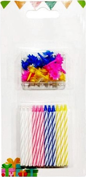 Karışık Renkli Çubuk Mum 24' lü Doğum Günü Pasta Mumu - Pasta Süsü