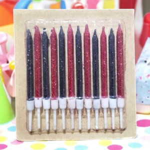 DOĞUM GÜNÜ PASTA MUMU KIRMIZI SİYAH 12 ADET SİMLİ MUM 10 CM KUTLAMA MUMU