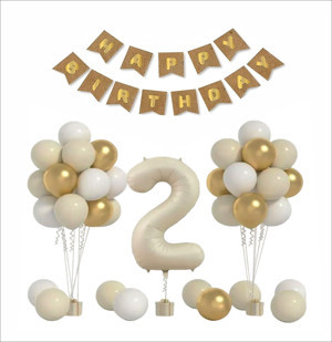 2 YAŞ KRAFT TEMA GOLD ,BEYAZ, KUM BALON+ BANER SETİ