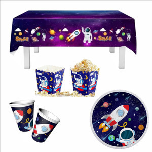 Uzay Temalı Tabak Bardak Masa örtüsü Ve Mısır Kutusu