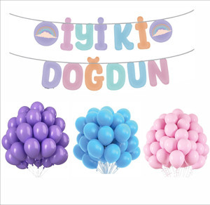 Makaron Banner+ Mor, Mavi, Pembe Balon Seti