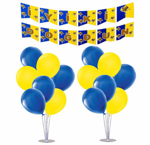 2 Adet Ayaklı Balon Standı 7li Set, 14 Adet Taraftar Sarı-Lacivert Balon+Banner