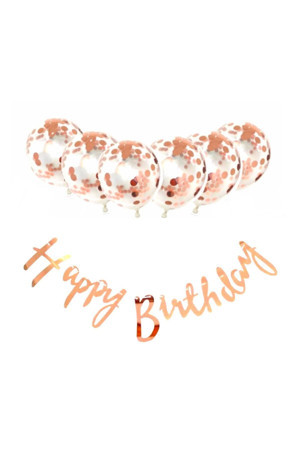 Parti Sürprizi Metalize Happy Birthday Rose Gold Banner Set